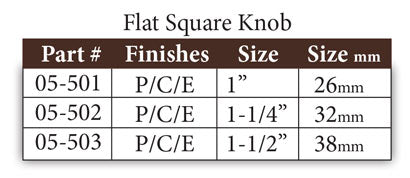 Available in three exquisite natural finishes, it complements a range of interior decor styles. Designed for seamless installation, this knob is crafted with precision and durability in mind. Enhance the beauty of your cabinets with the Flat Square Knob, a sophisticated and versatile choice that adds a touch of timeless elegance to any room.