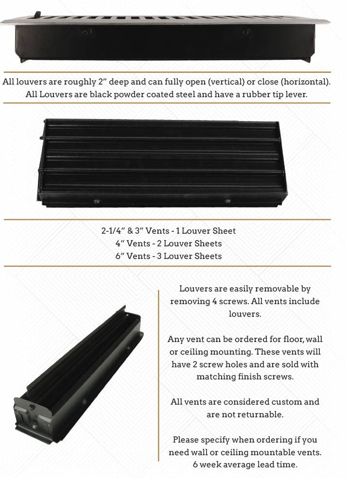 All vents come with black powder coated steel louvers. Please see the third image for louver pictures and information. Louvers can be easily removed with a Philips screw driver.