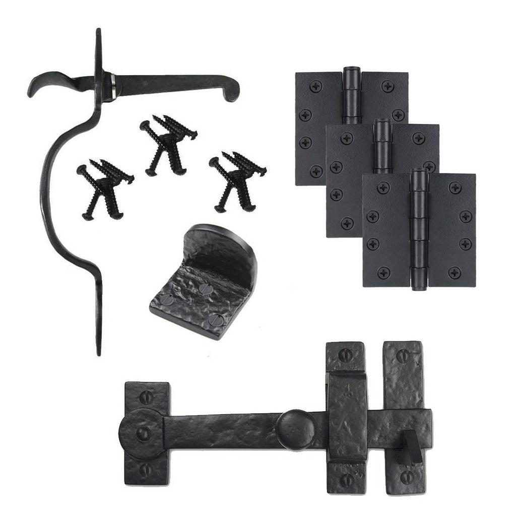 Cast Iron Heart Gate Kit - Drop Bar, Thumb Latch, Hinges, & Gate Stop