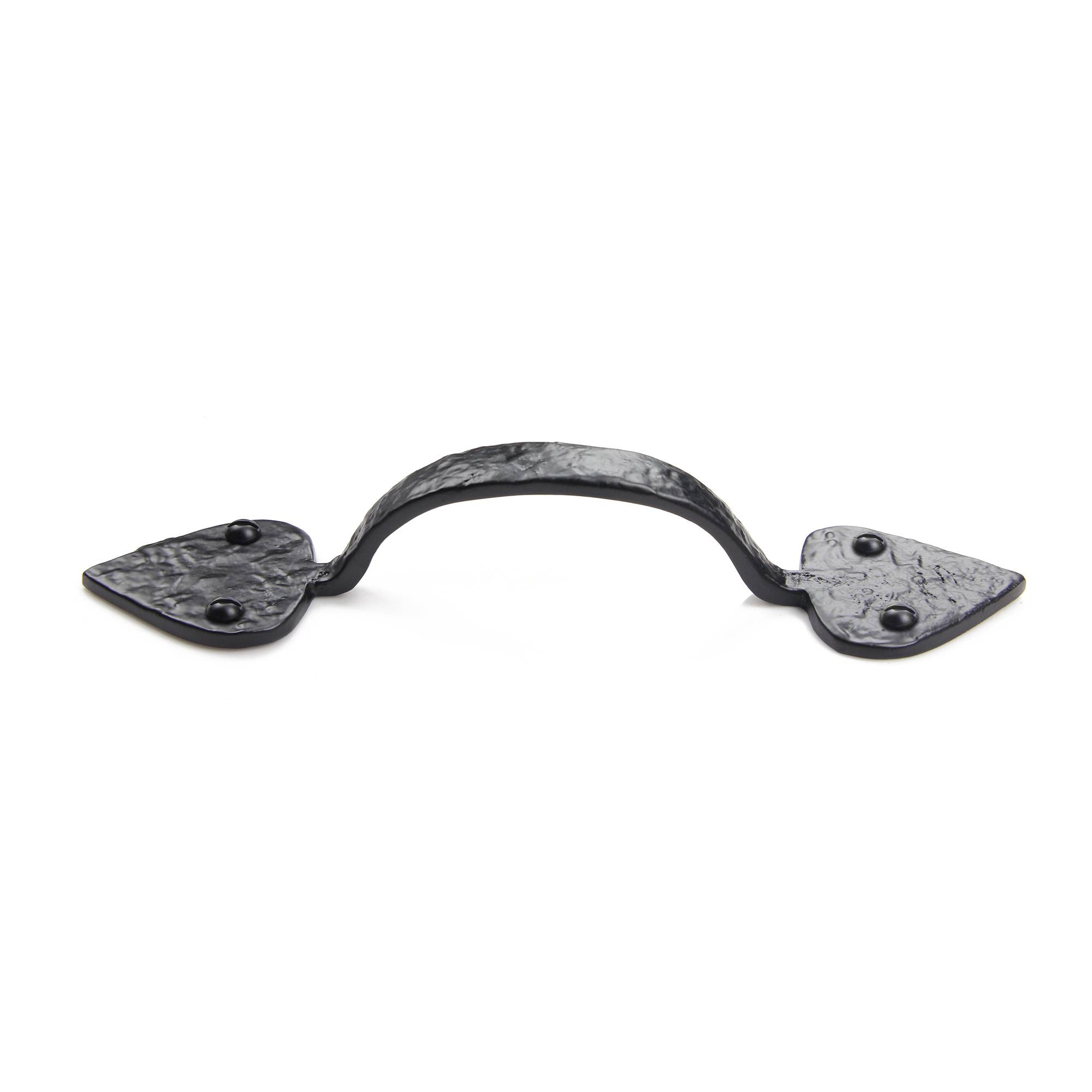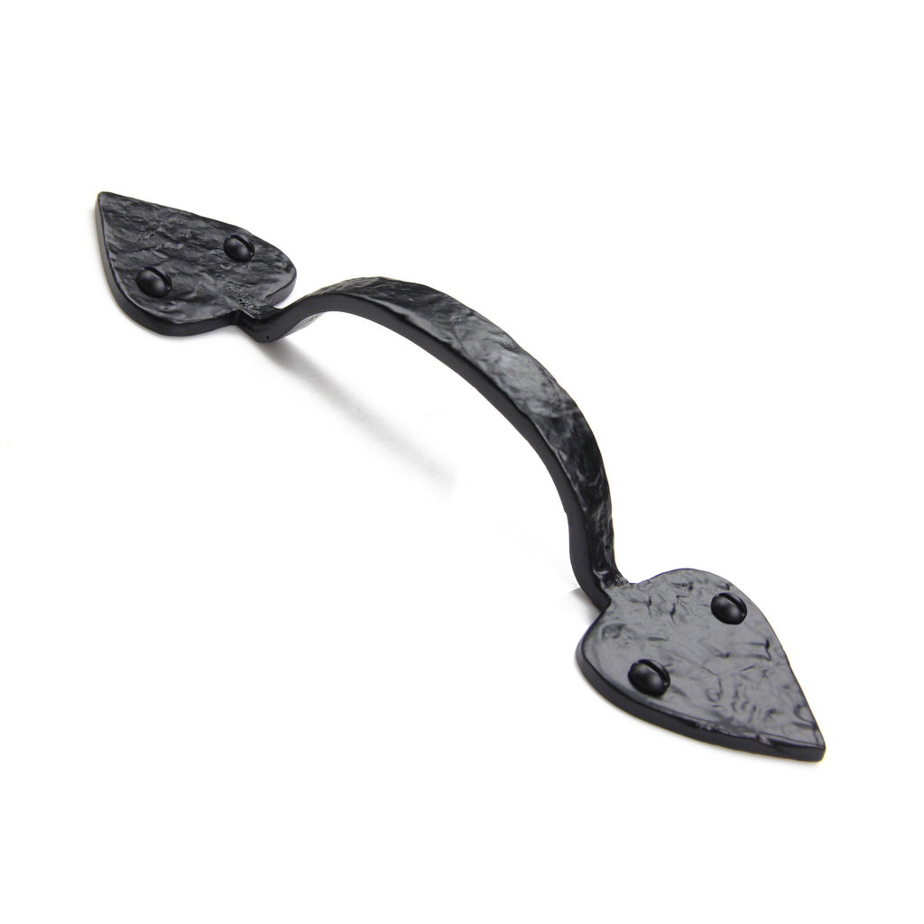 A Solid Cast Iron Door Pull Handle that can be used as a decorative and useful handle for gates, doors, garages, barns, sheds, and more. It is used to manually open and closes a variety of doors and hinged products.