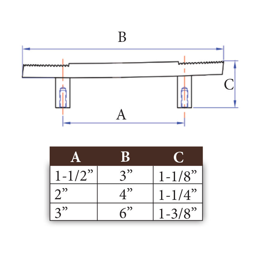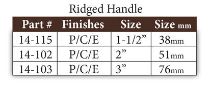 With a 1-1/2" center to center measurement, it ensures a seamless fit for your cabinets, making installation effortless while maintaining a cohesive look. Available in three exquisite natural finishes, you can choose from a selection that complements your personal style and harmonizes with your interior decor. The Ridged Deco Handle is a sophisticated choice that adds a touch of timeless charm and captivating texture to any room.